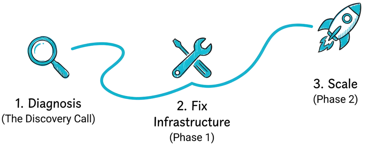 Only if your infrastructure is already solid. We'll assess this during the discovery call. But honestly, 95% of businesses we talk to have infrastructure issues. Running marketing on a broken system is just burning money.
